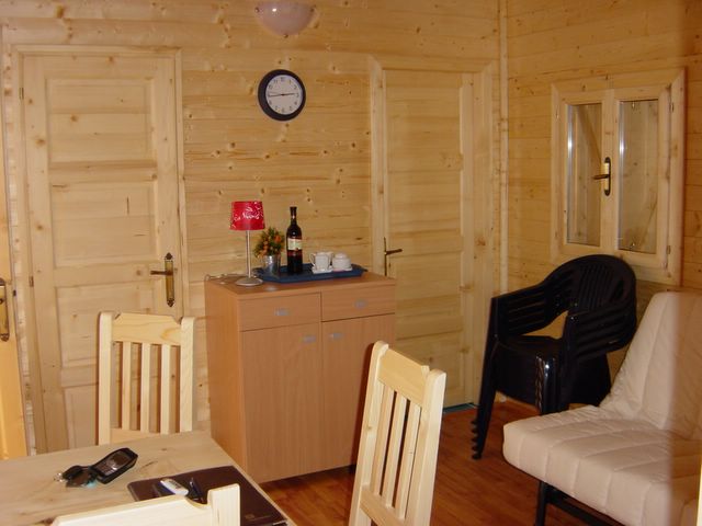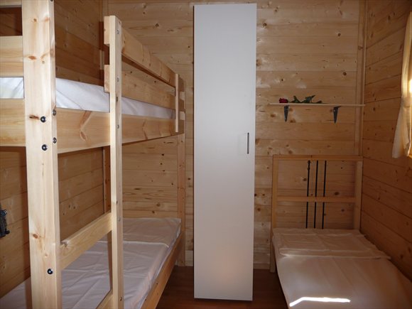 Het chalet is geschikt voor maximaal 5-6 personen, en is voorzien van een woonkamer met zitbank. De keuken is volledig ingericht met 4 kookpitten, koelkast, koffiezetapparaat, magnetron en alle keukengerei die u van thuis gewend bent. In het chalet bevinden zich 2 slaapkamers waarvan 1 slaapkamer met een tweepersoonsbed en 1 slaapkamer met een eenpersoonsbed en een stapelbed. Een eventuele 6e persoon zal op een slaapbank in de woonkamer slapen. Daarnaast beschikt het chalet over een zeer nette badkamer met douche, toilet en wastafel.