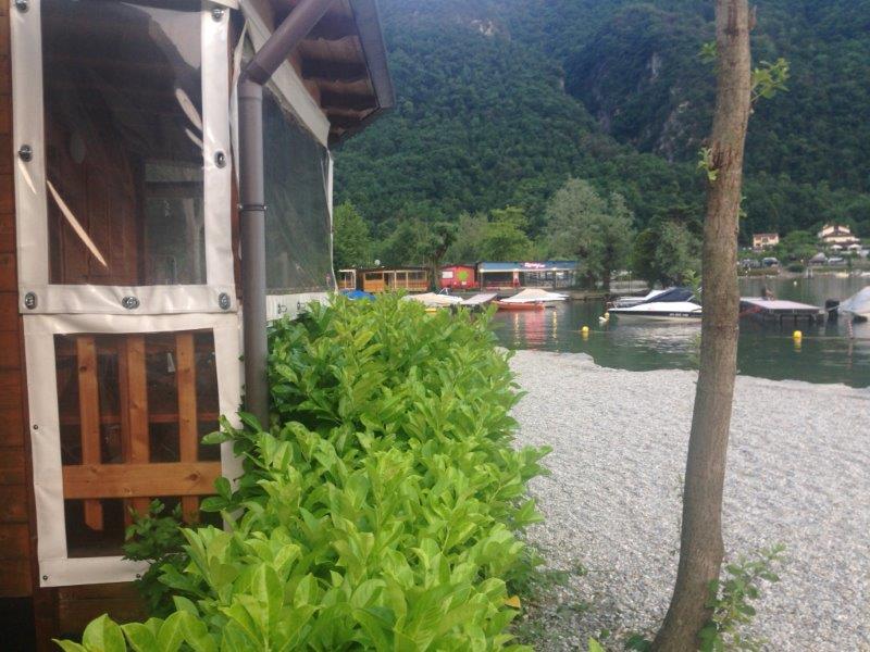 Kortom een compleet chalet vlakbij het meer van Lugano, met ruimte voor het parkeren van uw auto en boot, die u overigens gratis via een helling van de camping te water kunt laten. Tevens is er vlakbij de camping een helling voorzien van een kraan waar uw boot tegen een kleine vergoeding in het water kan worden getakeld.